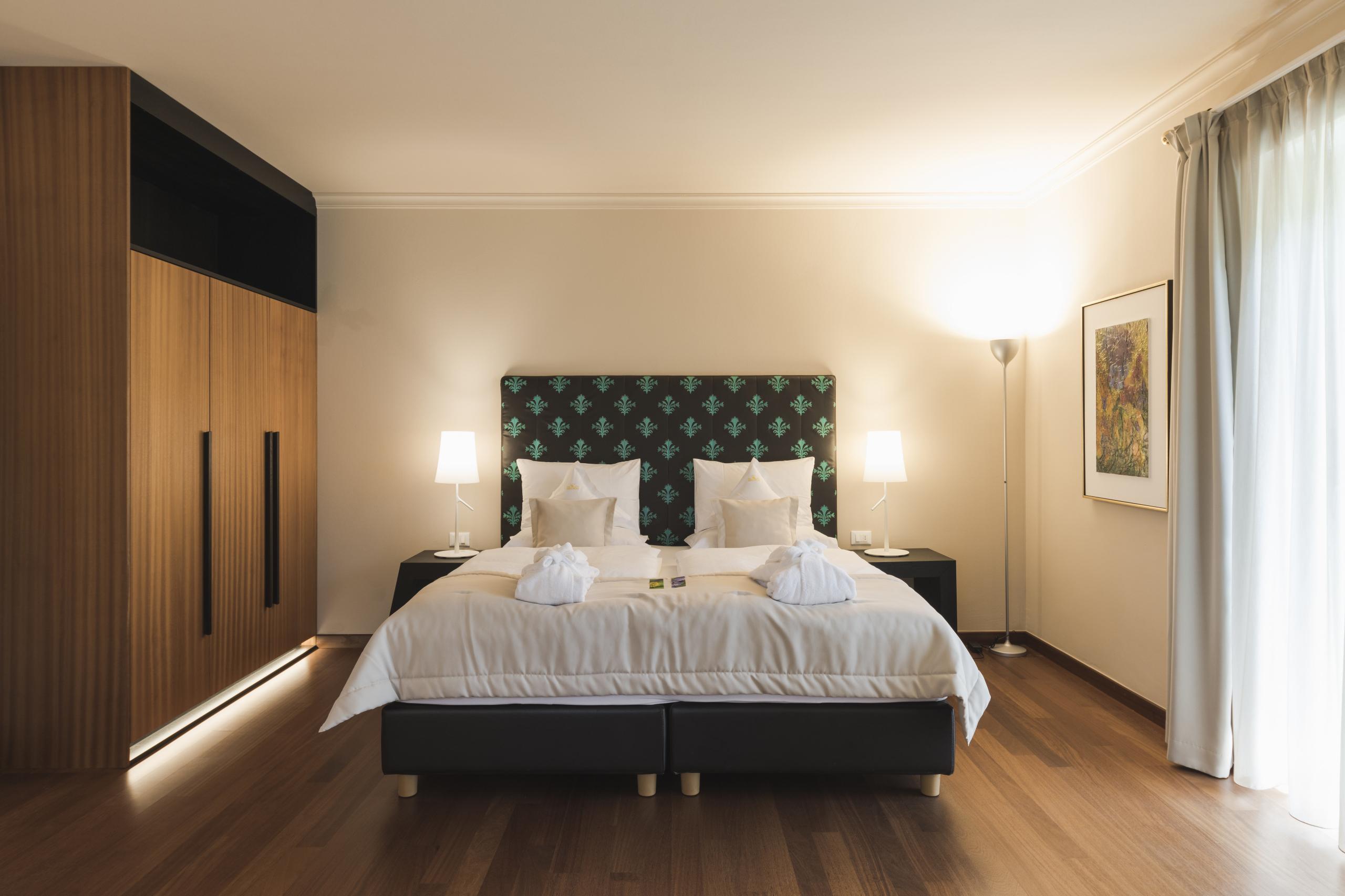King-size bed with memory foam mattress | additional room | terrace or balcony | wooden floor | shower | bidet | hairdryer | makeup mirror | exclusive high-quality L'Occitane care products| flat-screen TV | WiFi | phone | radio | AC | in-safe room | kettle with tea selection | Nespresso coffee machine | minibar | hiking backpack | South Tyrolean apples to welcome you | fresh bouquet of flowers from our garden | Loacker treats