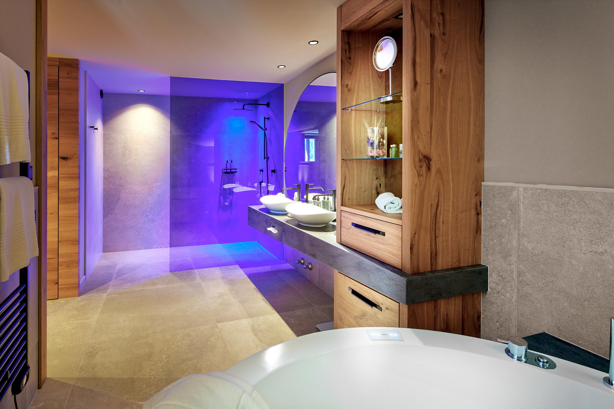 Exklusiv entspannen in unserer alpin-eleganten Spa-Suite in der 3. Etage mit eigener Whirlwanne und finnischer Sauna mit tollem Ausblick, modernem Badezimmer mit Doppelregendusche, gemütlichem Wohnbereich mit edlem Eichenholz, Romantic Fire, Espressomaschine & Teeset, großzügigem Balkon mit grandiosem Blick ins Gsieser Tal und zu den Dolomiten.