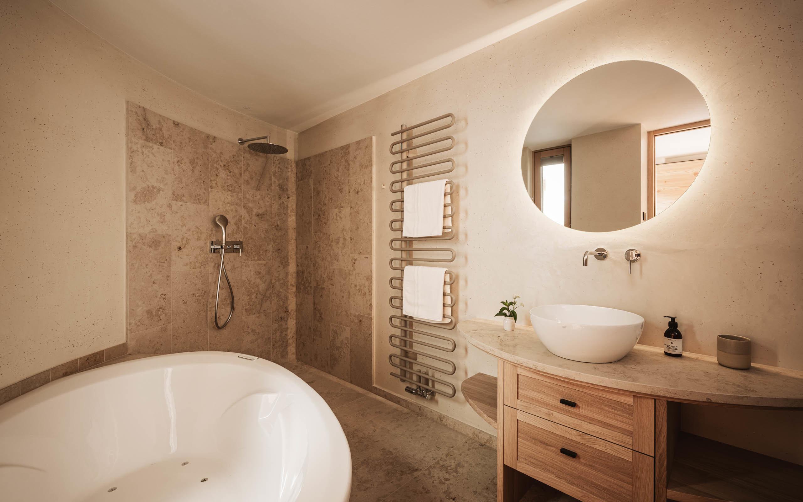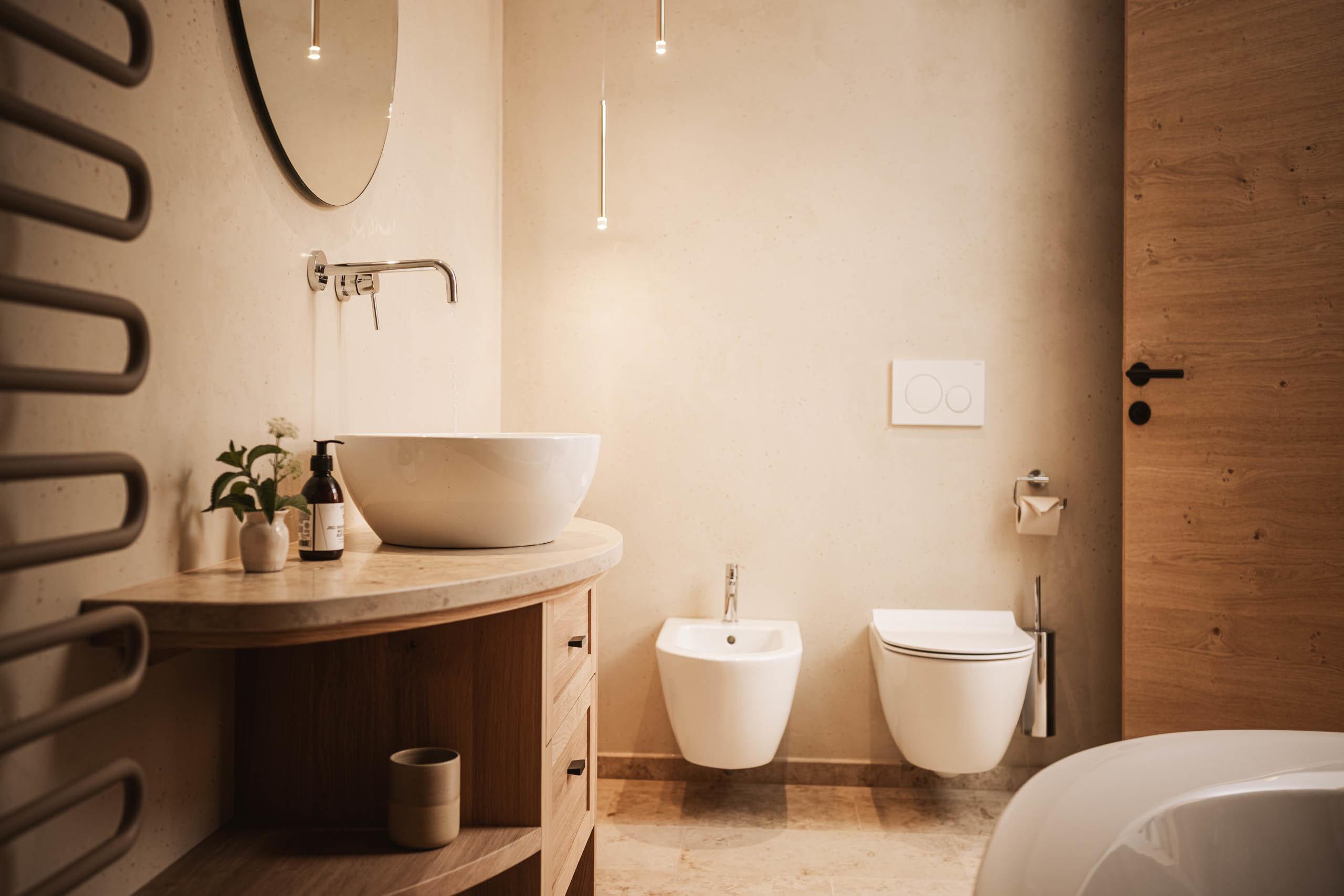 Due camere da letto, l’ampio soggiorno e il giardino privato di 30 m² è un appartamento da sogno per le vacanze a Bressanone per un’intera famiglia o un gruppo di amici fino a cinque persone. I due lussuosi bagni in marmo Vi attendono per una meravigliosa doccia calda dopo un’avventura nelle Dolomiti, un viaggio gastronomico o una giornata di shopping nel centro storico di Bressanone. La cucina di alta qualità con isola di cottura e accesso diretto al giardino privato è il punto d’incontro perfetto per serate culinarie accompagnate da un ottimo Kerner della cantina del vicino monastero di Novacella.