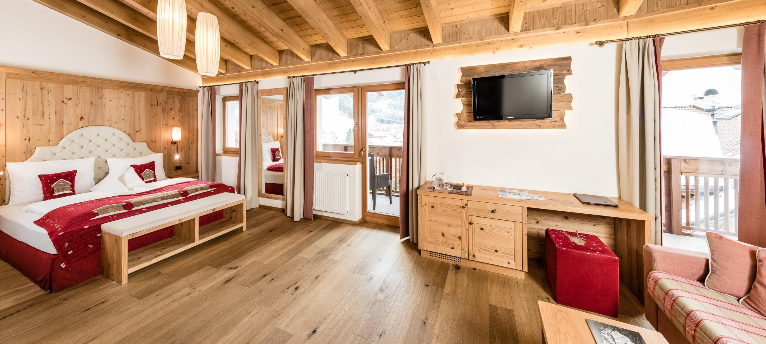 A unique environment in its style, just like this room is unique. A single Belvita Suite 205, which encloses in a single room the ideal atmosphere for a romantic stay. From the private balcony you can enjoy a wonderful view of the magical Dolomites, which frame our beautiful village of San Vigilio di Marebbe.