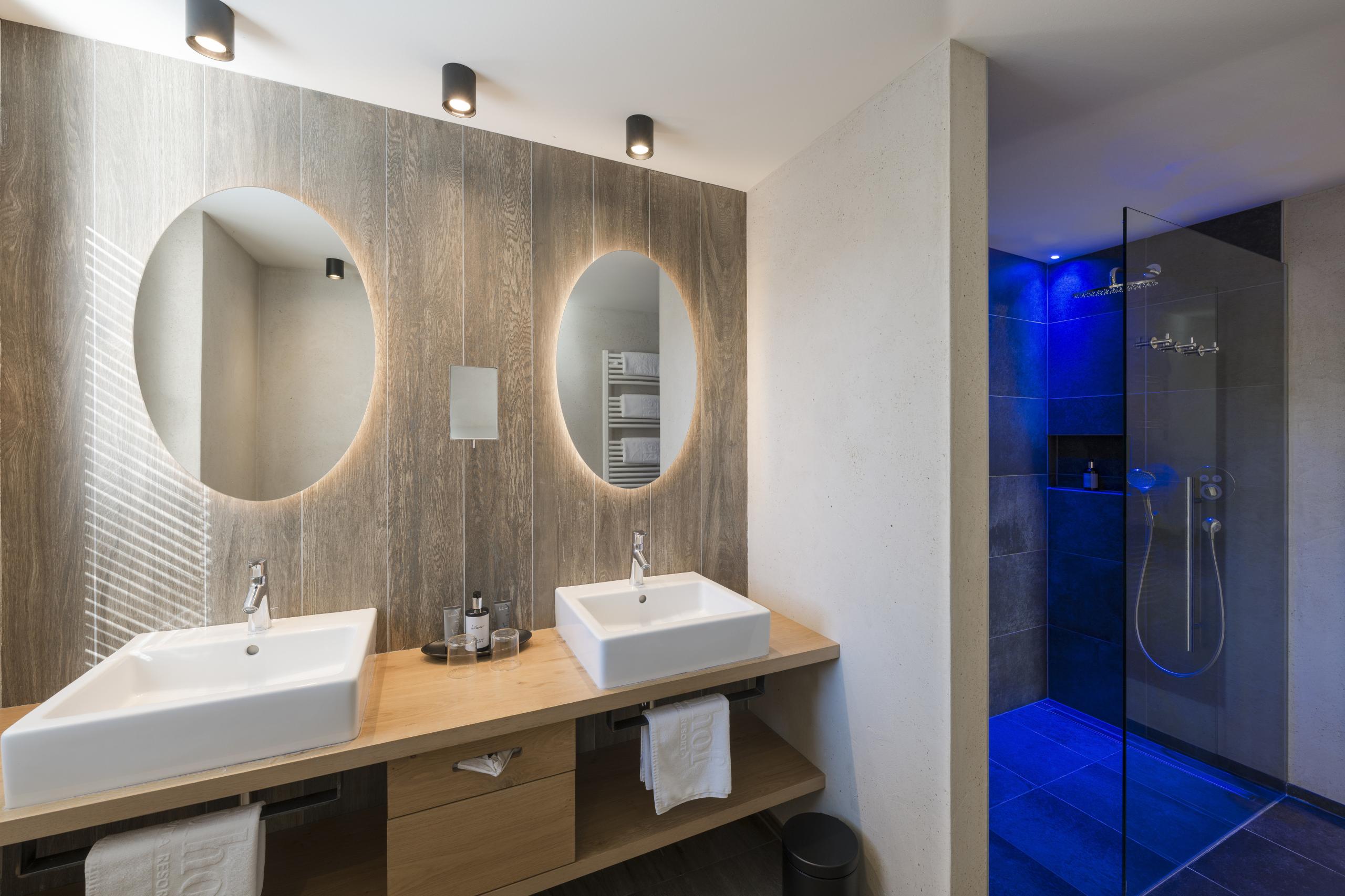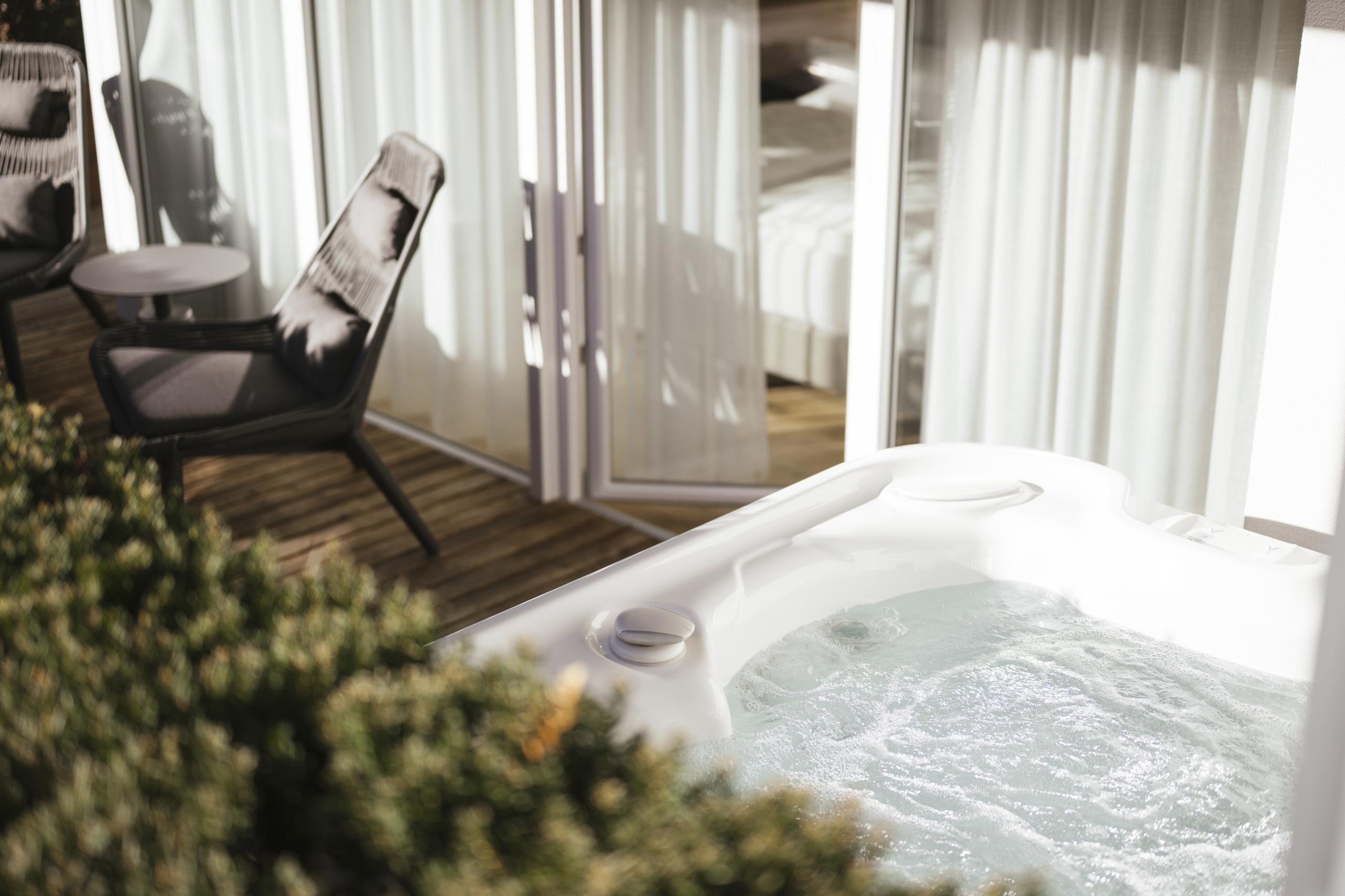53 m² - Our Magic mountain Suite will amaze you with its own whirlpool on the spacious south-west-facing balcony with relax lounger and hanging chair, as well as with the exclusive appointed living room with large, cosy seating corner, wooden floor, natural wood furniture and separate children’s room with two single beds. Also features: modern bathroom with large walk-in shower, double basin, separate toilet, minibar, safe, 2 flat screen TV, telephone, free WiFi, a garage parking space and air conditioning.