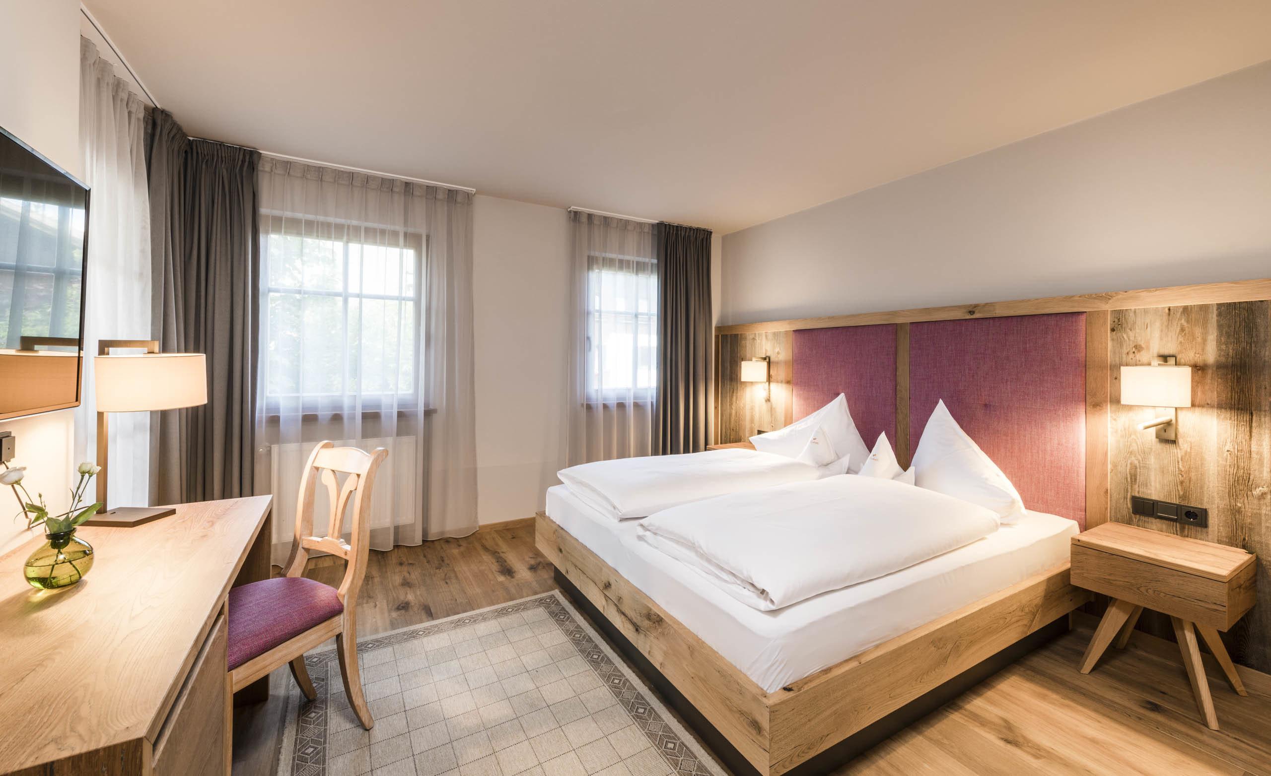 This generous accomodation completely rebuilt with old oak wood and old spruce wood in alpine barn stile, modern lighting, has bath with window and large shower, separate WC with bidet and sink, bedroom with double bed, separated bedrom with 2 single beds 0,90 m x 1,80 m or separated bedrom with French bed 1,20 m x 2,00 m or single bed 0,90 m x 2,00 m, living room, walk-in cupboard, 3 Sat-Smart-FullHd-Led-TV, internet access and balcony.